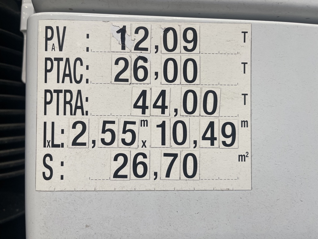 - Poidsà vide : 12090KG / PTC : 26000KG / PTRA : 44000KG